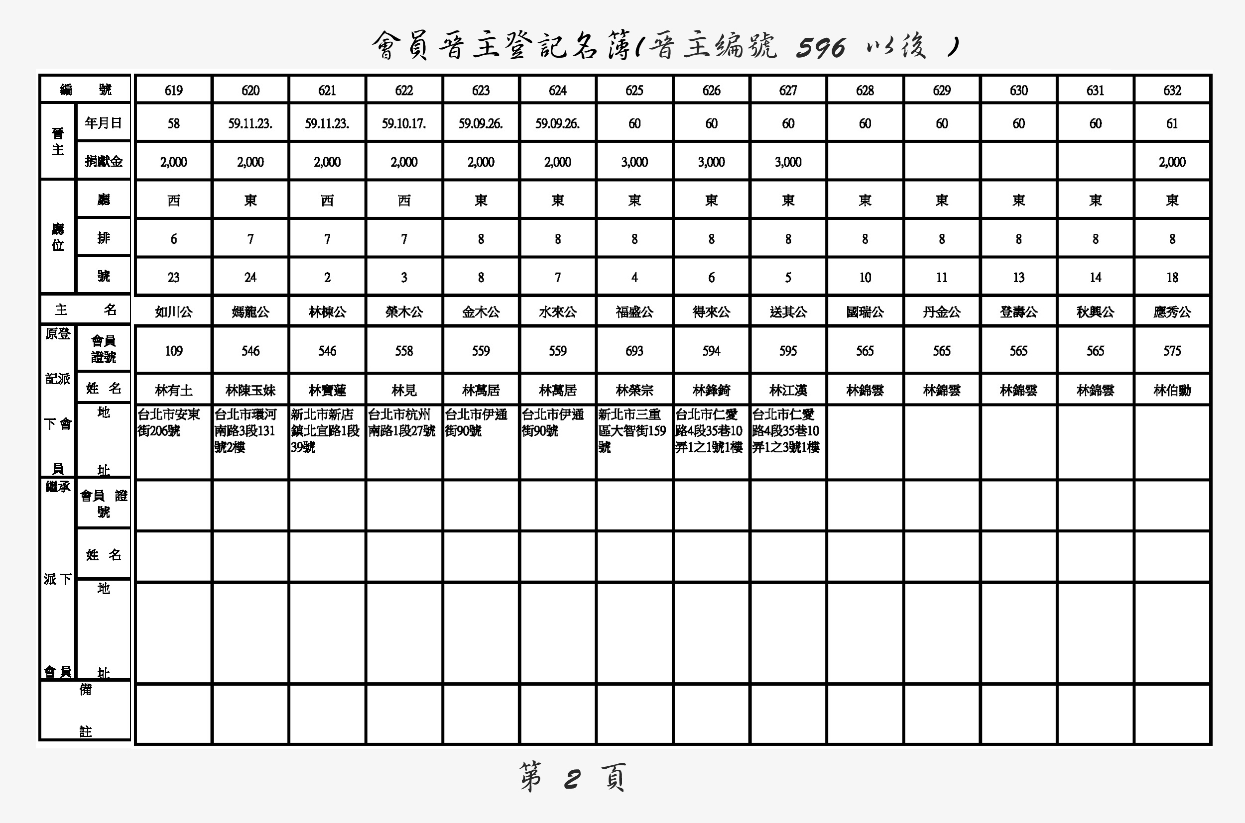 晉主牌位全銜610- 會員晉主登記名簿 (編號 597 ~ 792 ) 前往 ஐ 會員晉主登記名簿 ஐ 會員晉主資料 ஐ 長山世譜 ஐ ஐ 會員晉主神位登記表 ஐ 會員晉主入會申請書 晉主登記名簿 (編號 1 ~ 300 ) 晉主登記名簿 (編號 301 ~ 596 ) 晉主登記名簿 (編號 597 ~ 792 ) 晉主登記名簿 (晉主 793 ~ )